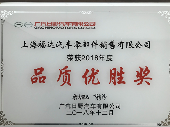 近日广汽日野汽车有限公司召开供应商年度会议,会上恒峰G22股份产品荣获了广汽日野2018年度“品质优胜奖”。